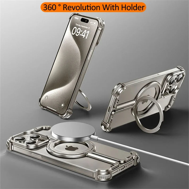 Luxury Zinc alloy Frameless Magsafe Stand Phone Case